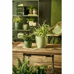 BAUHAUS SK Übertopf Rund Bergamo Außenmaß (Ø X H): 13 X 12 Cm, Blattgrün, Keramik, Glänzend