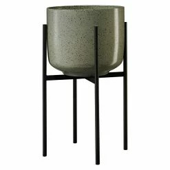 BAUHAUS Soendgen Keramik Übertopf Rund Bari Außenmaß (Ø X H): 24 X 22 Cm, Graugrün, Keramik