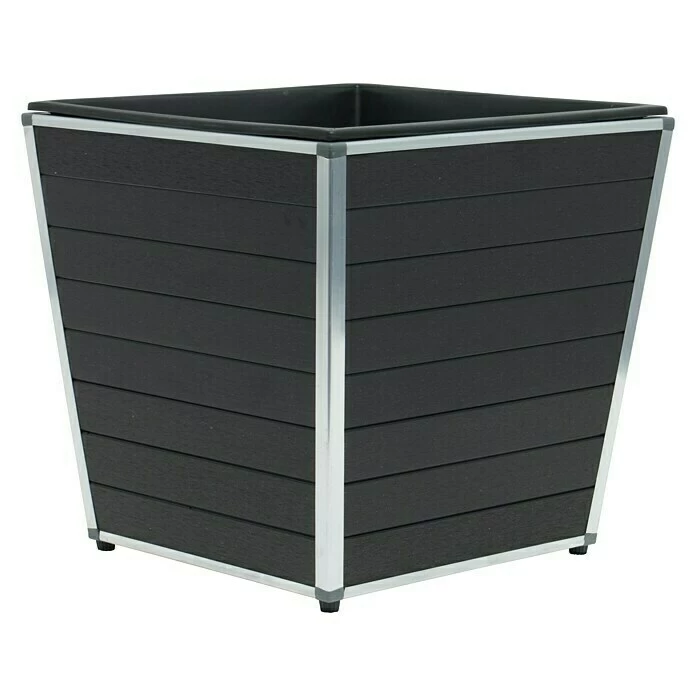 In schlichtem Anthrazit überzeugt der Pflanzkübel aus WPC mit einer ausgewogenen Kombination aus Funktionalität und Design. Das WPC ist witterungsbeständig, pflegeleicht und strotzt Regen, Temperaturschwankungen und UV-Strahlung. Es ist durch einen unlackierten Aluminiumrahmen eingefasst. Ein Kasteneinsatz aus Kunststoff erleichtert die Bepflanzung.
