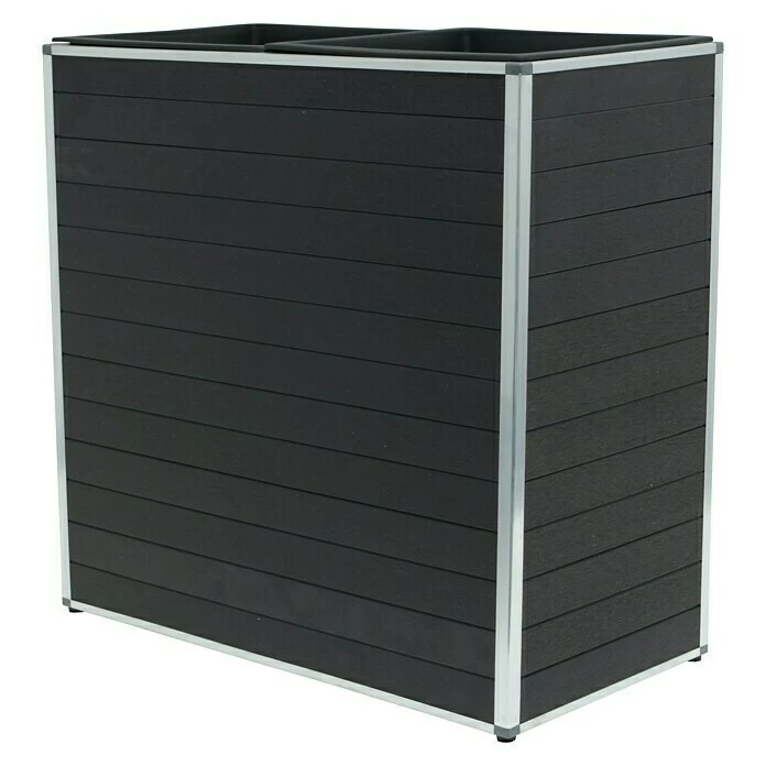 In schlichtem Anthrazit überzeugt der Pflanzkübel aus WPC mit einer ausgewogenen Kombination aus Funktionalität und Design. Das WPC ist witterungsbeständig, pflegeleicht und strotzt Regen, Temperaturschwankungen und UV-Strahlung. Es ist durch einen unlackierten Aluminiumrahmen eingefasst. Ein Kasteneinsatz aus Kunststoff erleichtert die Bepflanzung.