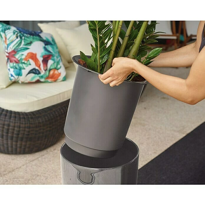 Der Kunststoffeinsatz ist passend für den Übertopf Santorini 65 cm und erleichtert dank seines geringen Gewichtes Pflanzarbeiten wie Umtopfen oder das Umstellen von Pflanzen. Er besteht aus hochwertigem, UV-beständigem Polypropylen mit einer glänzenden Oberfläche und ist sehr einfach zu installieren. Zudem ist der Kunststoffeinsatz zur Nutzung mit dem automatischen Bewässerungssystem Santorini konzipiert.