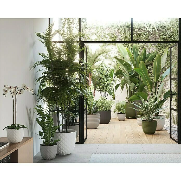 Der Pflanztopf Havana Tropical von Artevasi ist sowohl für den Innen- als auch den Außenbereich geeignet. Durch ein verschließbares Entwässerungsloch kann im Außenbereich das Wasser abfließen und im Innenbereich bleibt das Wasser im Topf. Der Topf besteht aus mattem Kunststoff und ist in seiner äußeren Struktur an eine Ananas angelehnt. Durch einen erhöhten Innenboden ist dieser Topf auch ideal für Orchideen geeignet.