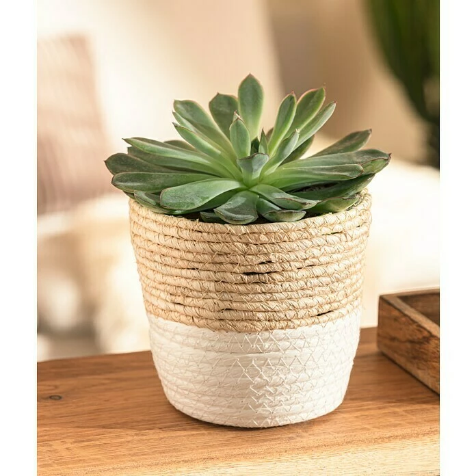BAUHAUS Übertopf Rund Rachel Außenmaß (Ø X H): 14 X 14 Cm, Natur/Weiß