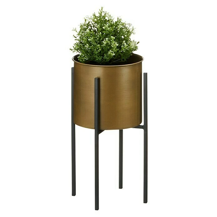 BAUHAUS Übertopf Rund Ø X H: 21 X 40 Cm, Schwarz/Gold, Metall