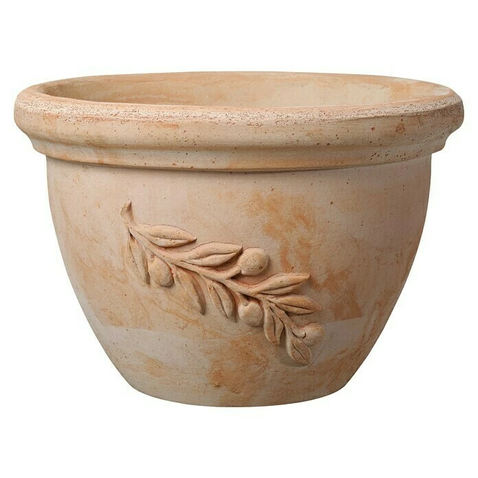 BAUHAUS Deroma Olive Pflanzschale Rund Ciotola Außenmaß (Ø X H): 20 X 12,8 Cm, Naturmaterialien, Terracotta