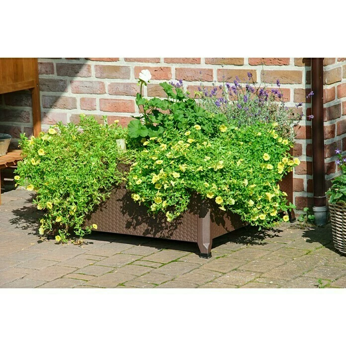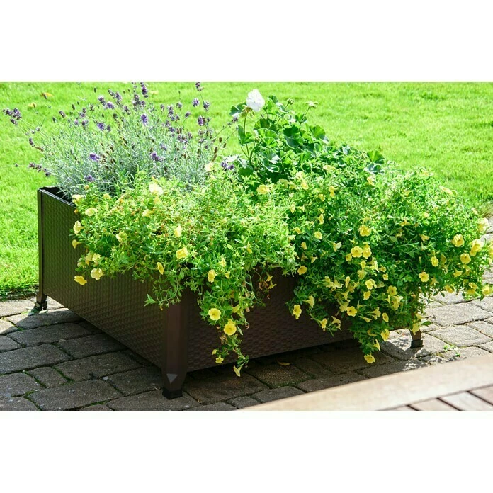 Das Dobar Pflanzgefäß ist ein dekoratives Gestaltungselement für den Außenbereich und bietet vielfältige Möglichkeiten zur Bepflanzung. Ob als Zierbeet, Kräuterbeet, Gemüsebeet oder Frühbeet, der dunkelbraune Pflanzkasten in moderner Rattan-Optik ist ein harmonischer Blickfang in jedem Garten. Hergestellt aus kaltgewalztem, pulverbeschichtetem Stahl eignet sich der wetterfeste und robuste Pflanzkasten hervorragend für den Gebrauch im Garten, auf der Terrasse oder auf dem Balkon.