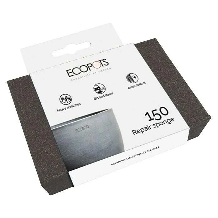 Mit dem Reparaturschwamm von Ecopots können Kratzer oder Flecken an der Oberfläche der Pflanztöpfe und Untersetzer einfach und mit wenig Kraftaufwand korrigiert werden. Das Produkt kann beliebig oft mit dem Reparaturschwamm bearbeitet werden bis die gewünschte Optik wiederhergestellt ist. Bei tieferen Kratzern kann mit dem Reparaturschwamm erst vertikal, dann nochmals horizontal geschliffen werden. Der Reparaturschwamm kann mehrmals verwendet werden.