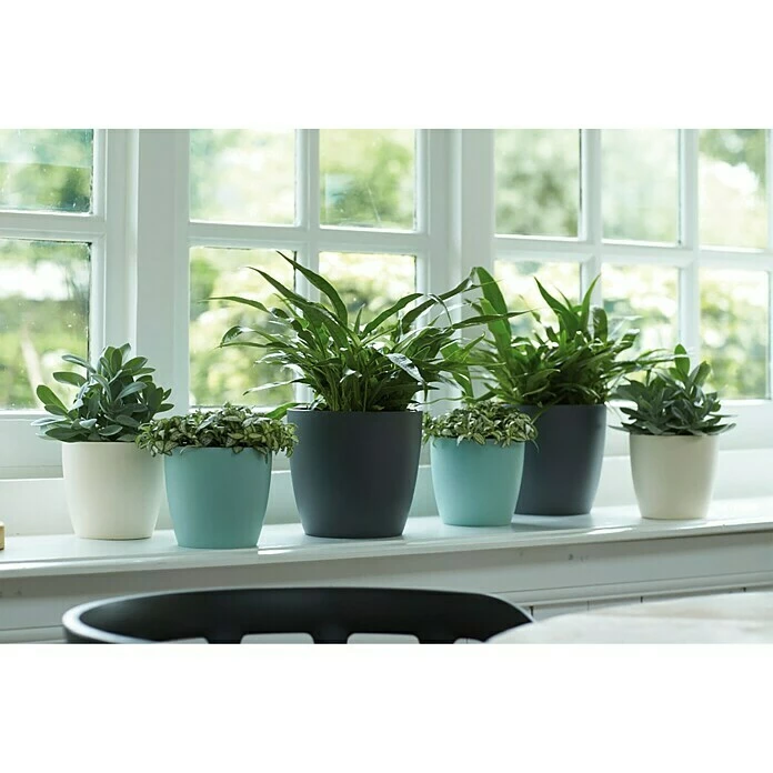 Der runde Übertopf der Elho-Serie Brussels ist aus Qualitätskunststoff gefertigt und vollständig recycelbar. Das zeitlose, dezente Design passt zu jeder Pflanze und jedem Einrichtungsstil. So fügt sich der wasserdichte, stoßfeste Topf dezent ein und bereitet für viele Jahre Freude.