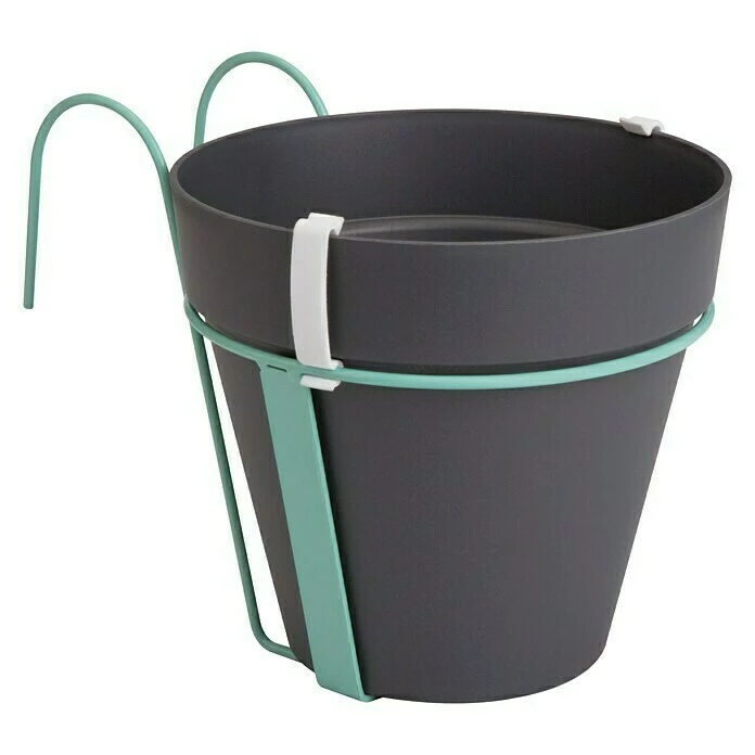 Das Loft Urban Pflanztopfhalter-Set von Elho besteht aus dem anthrazitfarbenen Pflanztopf und der passenden Halterung in mintgrün. Das Set in modernem Design überzeugt durch seine hochwertige Verarbeitung und ist auf jedem Balkon ein absoluter Blickfang.