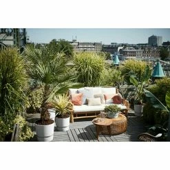 Das Pflanzgefäß Greenville ist zu 100 % aus recyceltem Material gefertigt. Das Designer-Pflanzgefäß verbirgt eine integrierte Speichermöglichkeit für Wasser, sodass die Pflanzen immer gleichmäßig mit Feuchtigkeit versorgt sind. Schlicht und modern passt sich das Pflanzgefäß Greenville dem eigenen Einrichtungsstil hervorragend an. Wilde Grünpflanzen bilden einen lebendigen Kontrast mit einem harmonischen Gesamtbild. Das Pflanzgefäß ist frostbeständig und kann somit ganzjährig draußen verwendet werden.
