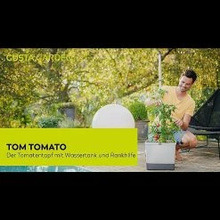Der innovative Tomatentopf Tom Tomato ist das Rundum-sorglos-Paket für das Anpflanzen von Tomaten. Das integrierte Bewässerungssystem und die stabile Rankhilfe mit Befestigungshaken für die Pflanze bieten den Tomaten alles, was sie für das Wachstum brauchen. Aufgrund der optimalen Größe des Wassertanks von Tom Tomato muss dieser nur alle paar Tage mit Wasser aufgefüllt werden. Tom Tomato überzeugt nicht nur durch seine Funktionalität, sondern auch durch das besondere Design.
