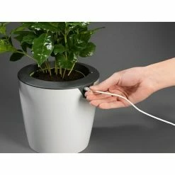 Der Lazy Leaf Übertopf, bekannt durch die Sendung Die Höhle der Löwen, ist ein intelligentes Bewässerungssystem für Küchenkräuter, Zimmerpflanzen und viele mehr. Per Touch-Control kann zwischen den 10 Bewässerungsstufen gewählt werden, um die passende Wassermenge für jede Pflanzenart einzustellen. Ein integrierter Temperatursensor passt die Gießmenge bei Bedarf an. Dabei ist zu beachten, dass der Lazy Leaf Übertopf für einen Temperaturbereich von 0 – 50 °C geeignet ist. Spezielle Warntöne weisen auf geringen Wasserfüll- und Akkustand hin, damit der 6,35 Liter Wassertank stets befüllt ist. Um den Schlaf nicht zu stören werden durch einen Tageslichtsensor die Signalgeräusche über Nacht verhindert. Je nach Wasserverbrauch hält der Akku bis zu 8 Wochen und kann bequem per Micro-USB-Kabel aufgeladen werden.