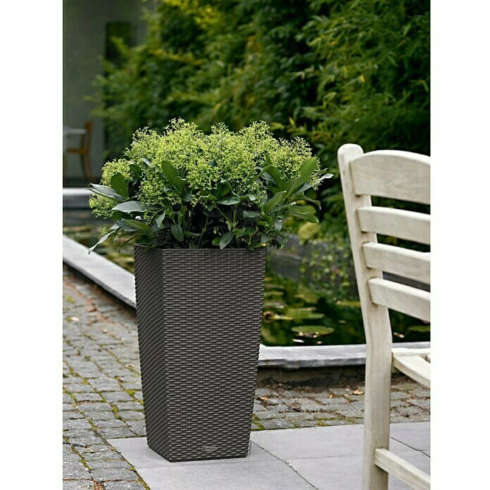 Das dekorative Pflanzgefäß Cottage Cubico von Lechuza, gefertigt aus Kunststoff, ist durch das praktischen Erd-Bewässerungssystem und der Regenwasser-Überlauffunktion im Außenbereich ganzjährig einsetzbar. Mit seiner attraktiven Säulenform lässt sich Ihr Eingangsbereich attraktiv gestalten, wobei die Pflanzen in Sichthöhe besonders gut zur Geltung kommen. Das All-in-One Set beinhaltet neben dem Gefäß einen Kunststoffeinsatz mit versenkbaren Griffen, einen Wasserstandsanzeiger, einen Einfüllschacht, Lechuza-Pon Pflanzsubstrat, einen Trennboden und eine Bodenschraube. Durch das einfache Öffnen der Bodenschraube kann überschüssiges Gieß- oder Regenwasser abgeleitet werden. Entwickelt und gefertigt in Deutschland garantieren Lechuza Produkte höchste Qualität.