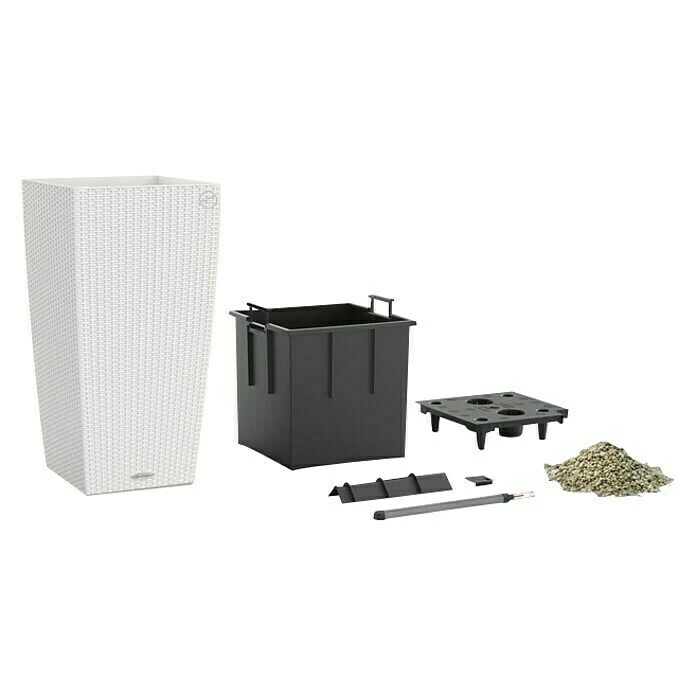 Das dekorative Pflanzgefäß Cottage Cubico von Lechuza, gefertigt aus Kunststoff, ist durch das praktischen Erd-Bewässerungssystem und der Regenwasser-Überlauffunktion im Außenbereich ganzjährig einsetzbar. Mit seiner attraktiven Säulenform lässt sich Ihr Eingangsbereich attraktiv gestalten, wobei die Pflanzen in Sichthöhe besonders gut zur Geltung kommen. Das All-in-One Set beinhaltet neben dem Gefäß einen Kunststoffeinsatz mit versenkbaren Griffen, einen Wasserstandsanzeiger, einen Einfüllschacht, Lechuza-Pon Pflanzsubstrat, einen Trennboden und eine Bodenschraube. Durch das einfache Öffnen der Bodenschraube kann überschüssiges Gieß- oder Regenwasser abgeleitet werden. Entwickelt und gefertigt in Deutschland garantieren Lechuza Produkte höchste Qualität.