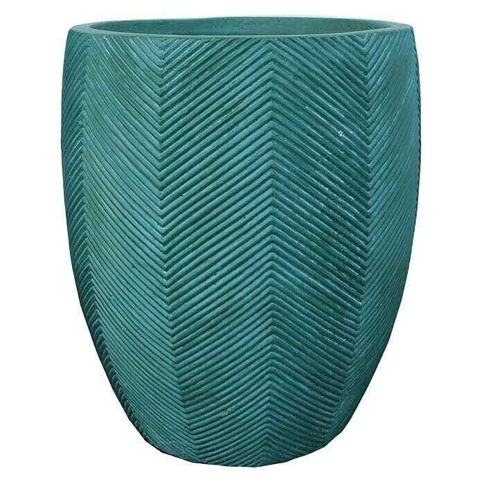 Das Pflanzgefäß Iowa von Mega Collections in Grün mit einer „Fischgräten“ Oberflächenstruktur bietet vielfältige Gestaltungsmöglichkeiten im Garten oder auf der Terrasse. Das Material Fibreclay besteht aus hochwertigem Steinpulver, welches mit Magnesium gemischt und mit Natur- und Glasfasergewebe stabilisiert wird. Diese Pflanzgefäße haben ein natürliches Aussehen und sind dabei leichter und unempfindlicher als Stein oder Ton. Das Material ist wetterbeständig.