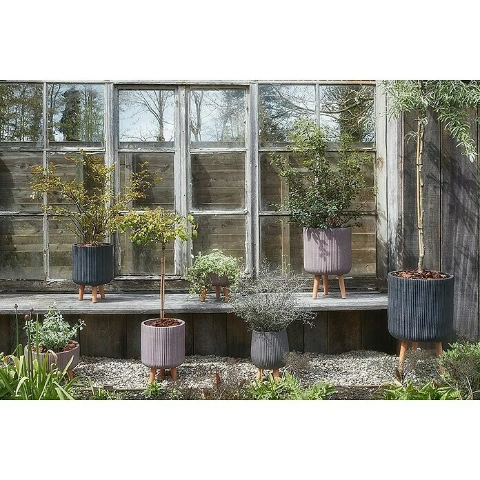 Der Pflanztopf Nouvo ist ein schicker und dennoch robuster Pflanztopf, der aus Fibreclay gefertigt wurde. Durch die Holzbeine steht er etwas höher, sodass die Pflanzen gut präsentiert werden und überschüssiges Wasser einfach ablaufen kann. Ein Entwässerungsloch sollte dafür gebohrt werden. Der Pflanztopf kann im Innen- und Außenbereich verwendet werden und lässt sich leicht mit anderen Töpfen der Serie kombinieren.