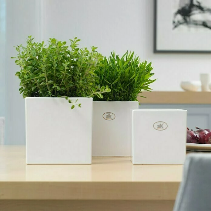 Der außergewöhnliche Keramikübertopf Latina von SK Soendgen Keramik zeigt sich in quadratischer Form und hebt sich von den üblichen Blumentöpfen ab. In Kombination mit einer Pflanze setzt er garantiert einen einmaligen Akzent im Wohnambiente, der bleibenden Eindruck hinterlässt.