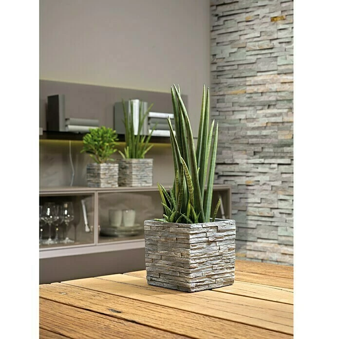 Der außergewöhnliche Keramikübertopf Latina Stonewall von SK Soendgen Keramik zeigt sich in quadratischer Form und hebt sich dank seiner natürlichen Steinoptik Oberfläche von den üblichen Blumentöpfen ab. In Kombination mit einer Pflanze setzt er garantiert einen einmaligen Akzent im Wohnambiente, der bleibenden Eindruck hinterlässt.