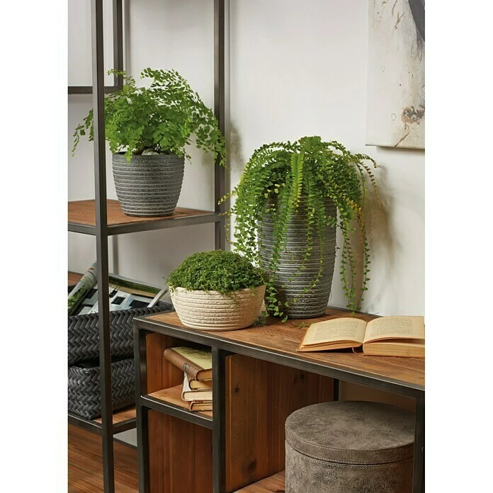 Der Übertopf Porto in der Farbe Anthrazit von SK Soendgen Keramik bringt mediterranes Flair ins Wohnzimmer. Die gerillte Oberfläche und natürliche, dezente Farbgebung sorgen für ein angenehmes Ambiente. Aus robuster Keramik und zu 100% wasserdicht, eignet er sich ideal für Zimmerpflanzen. Der Übertopf überzeugt außerdem durch seine hochwertige Verarbeitung und Qualität made in Germany.