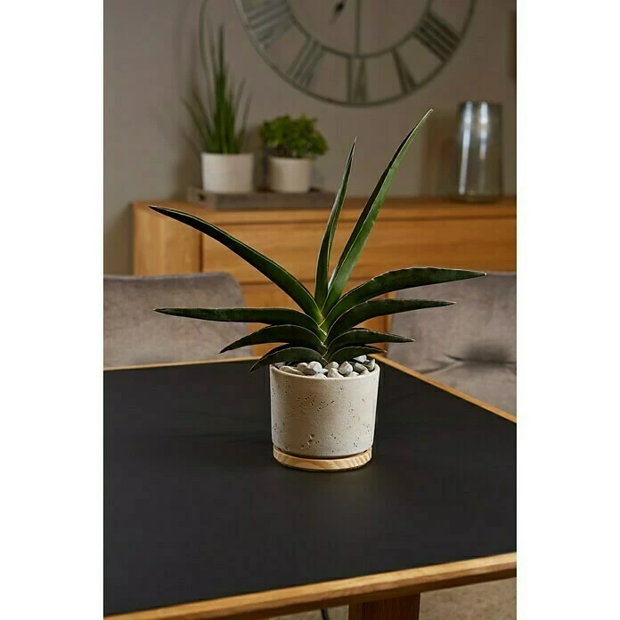 Der Keramikübertopf Paros Deluxe von Soendgen Keramik sorgt durch die Kombination aus hochwertigen Materialien und unregelmäßigen Oberflächen für eine moderne Natürlichkeit in jedem Einrichtungsstil. Das ästhetische Erscheinungsbild, durch die erstmals präsentierte Verbindung aus robuster Keramik und hochwertigem Holz, betont die Einzigartigkeit der Serie. Durch die natürlichen Farbnuancen, welche entsprechend ideal mit dieser Material Kombination harmonieren, gelten die Gefäße als besonderer Blickfang. Insbesondere Grünpflanzen und sukkulente Pflanzen wie Bogenhanf, Zamioculcas oder Aloe Vera kommen in diesem einzigartigen Gefäß ideal zur Geltung. Der Übertopf ist hochwertig verarbeitet und ist der perfekte Begleiter für jedes Ambiente.